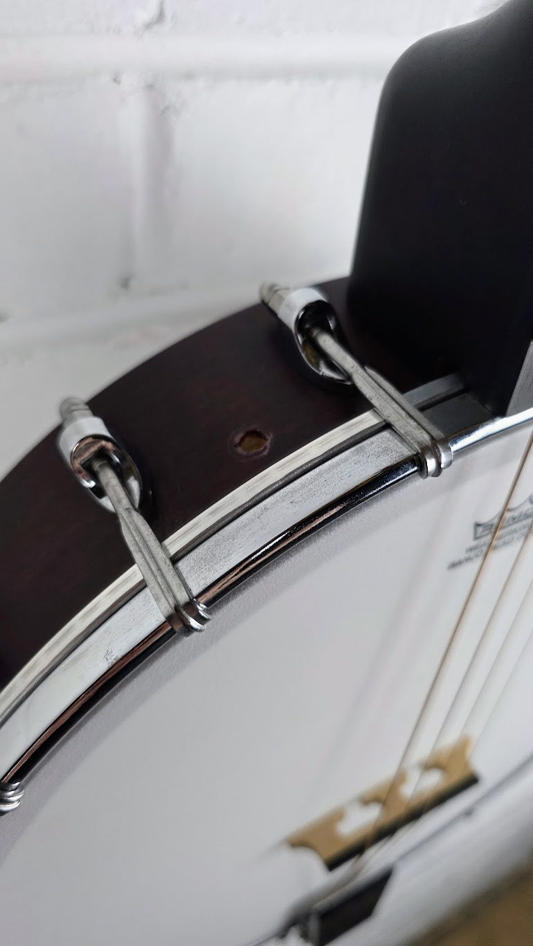 With a Remo Weatherking head and classic hardware appointments, this banjo delivers reliable tone and a familiar feel. It’s an accessible instrument for both beginners and seasoned players looking to add a vintage vibe to their sound without the extra weight of a resonator.
