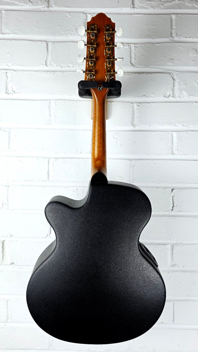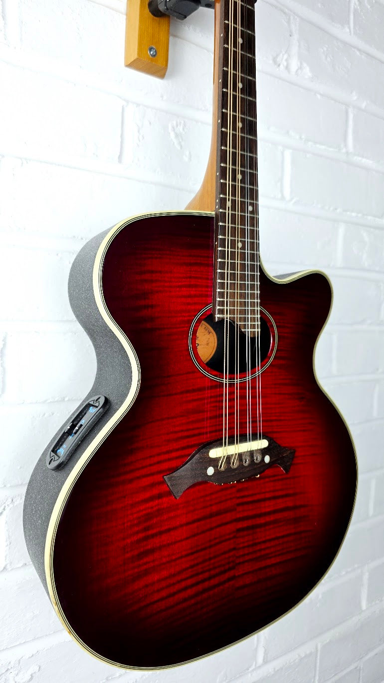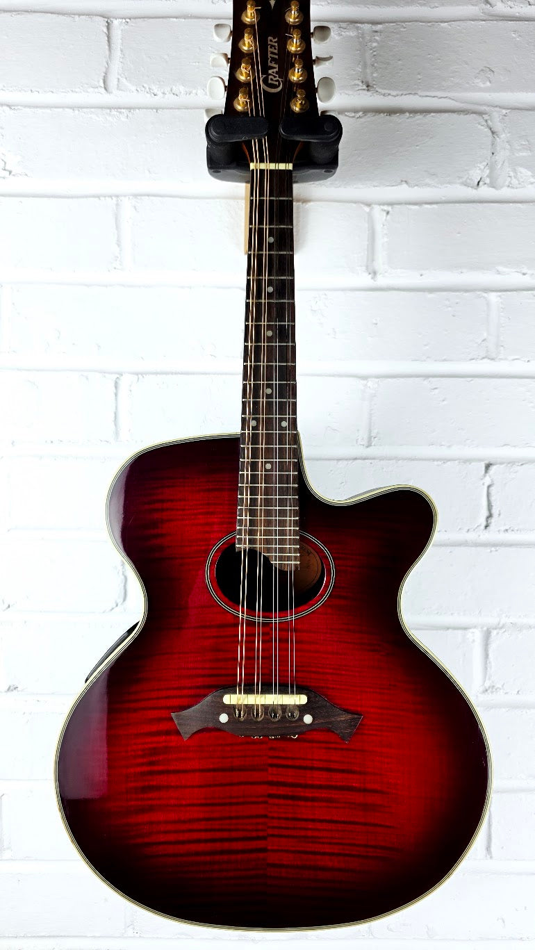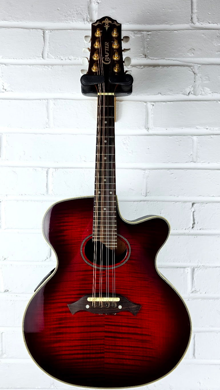 Bold in both looks and sound, the Crafter M70E Electro Acoustic Mandolin is a real eye-catcher in its striking Red Burst finish. Whether you're playing traditional folk, bluegrass, or adding texture to a modern acoustic set, this mandolin has the style and tone to match. Featuring a flamed maple top with a rich gloss finish and a round back composite body, it delivers impressive projection and clarity with a well-balanced tonal response.