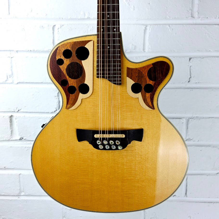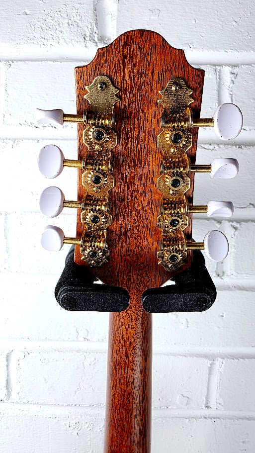 Hardware: Gold-plated tuning machines, rosewood bridge