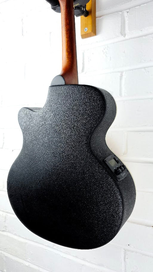 A stylish and reliable mandolin that stands out visually and sonically. The natural finish and multi-soundhole top project a bright, lively tone, and the active preamp ensures it’s performance-ready. Ideal for players seeking an affordable, yet capable electro-acoustic mandolin with appealing aesthetics and gig functionality. Delivered with a gig bag for added protection.