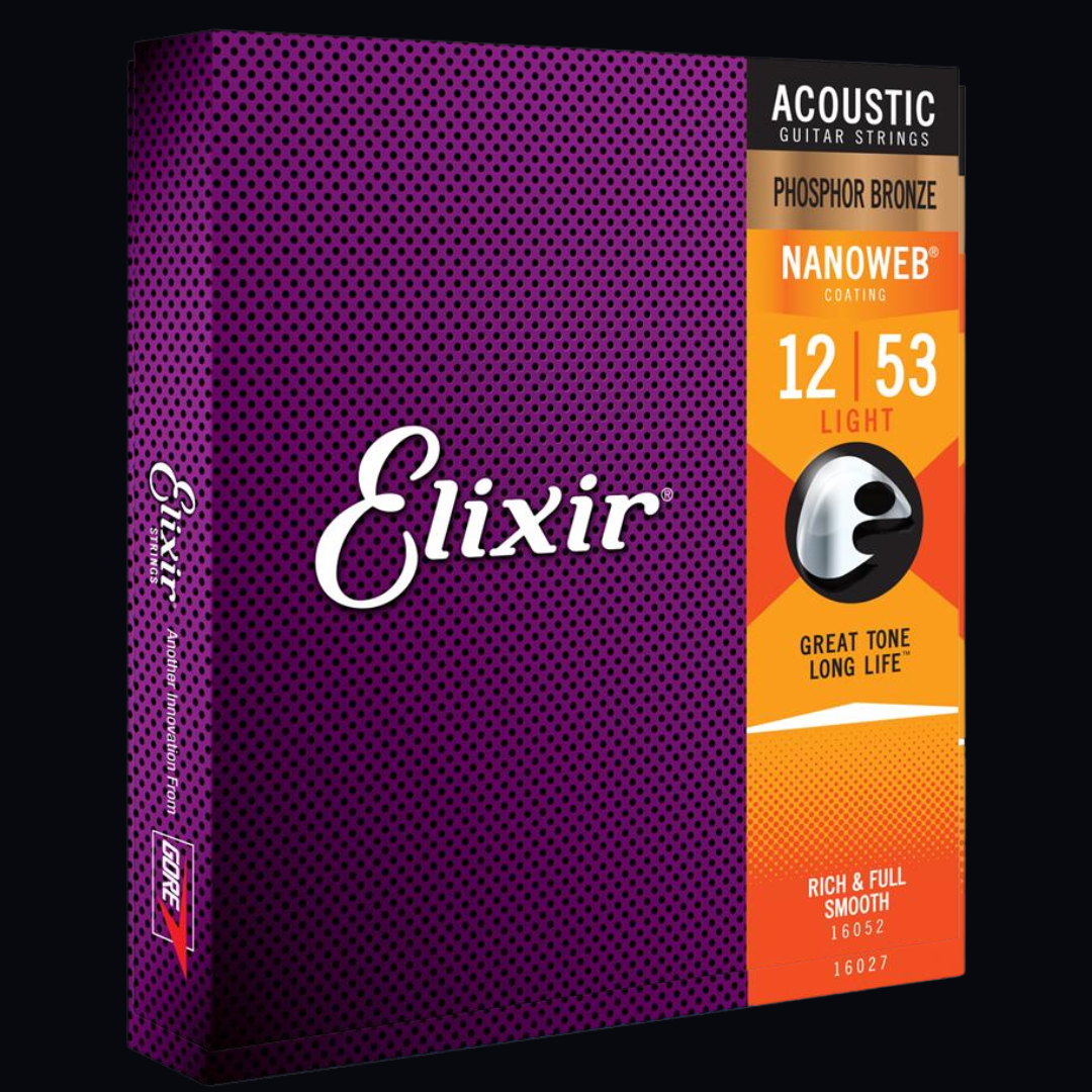 Looking for that full, warm acoustic tone with long-lasting clarity? The Elixir Nanoweb Phosphor Bronze 12-53 set (16052) is the go-to choice for countless acoustic players who need reliable tone that doesn’t fade after a few sessions. Thanks to Elixir’s ultra-thin Nanoweb coating, these strings offer a natural feel while resisting the build-up of dirt and grime that kills tone.