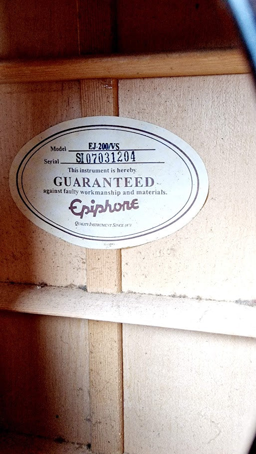 EPIPHONE EJ 200 VS JUMBO SUNBURST 2007 ACOUSTIC GUITAR + HARD CASE