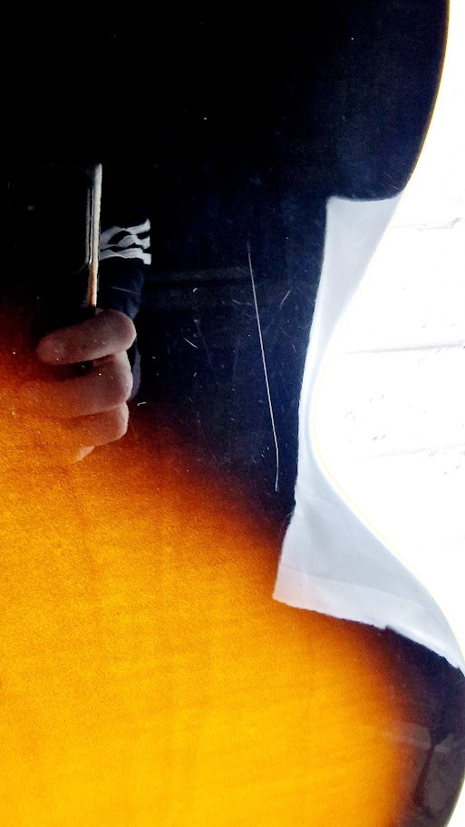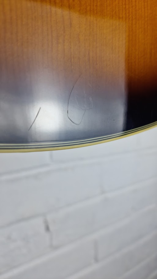 Plays superb. Cosmetically, has various marks and scratches as pictured. This has been played and loved, but tons of life left in it. Includes hard case.