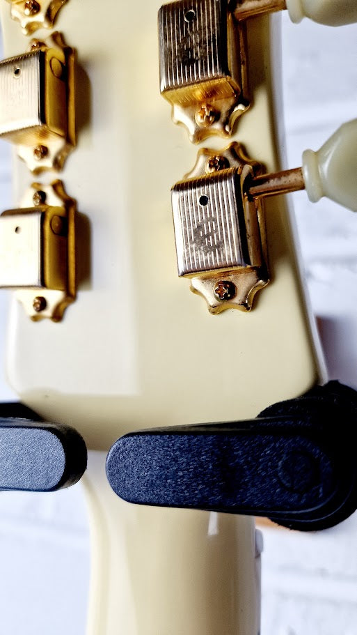 The Epiphone Les Paul Custom SG G-400 in Ivory is a striking take on a rock ‘n’ roll classic. Featuring a triple humbucker pickup configuration and elegant gold hardware, this guitar is built for tone and showmanship. Based on the iconic 1960s SG body shape but with an added pickup in the middle position, this G-400 model delivers versatile tones ranging from thick rhythm sounds to searing leads, making it a solid choice for players who crave power and style.