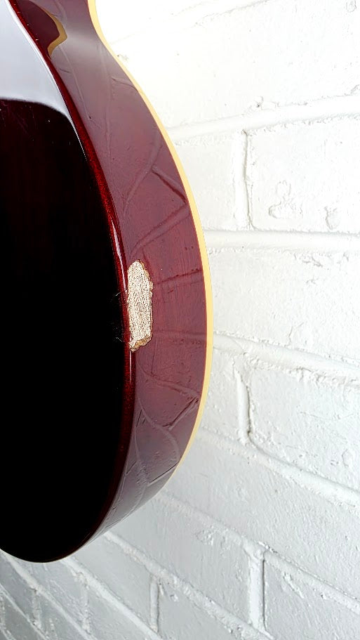 Lovely condition, plays great. The odd mark here and there as expected for a used instrument. One notable cosmetic flaw – a visible patch of lacquer missing on the back edge, as shown in the photos.