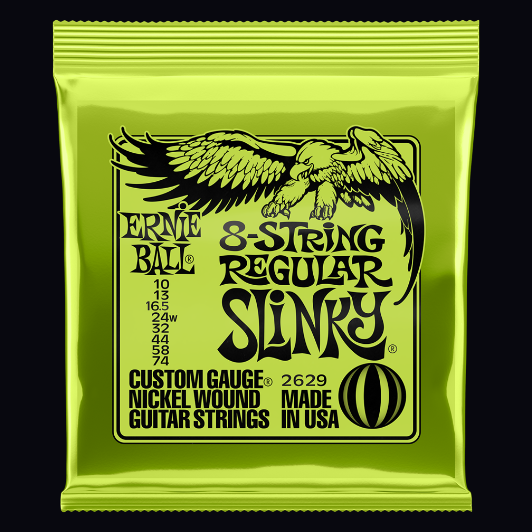 Ernie Ball 8-String Regular Slinky strings are engineered for extended-range players who need clarity, consistency, and power across every string. With gauges ranging from 10 to 74, this set provides a balanced feel that handles low tunings with ease while maintaining bright highs and tight midrange. Whether you're into djent, prog metal, or experimental styles, these strings deliver the tuning stability and articulation needed for complex 8-string work.
