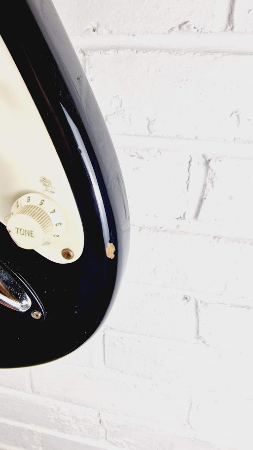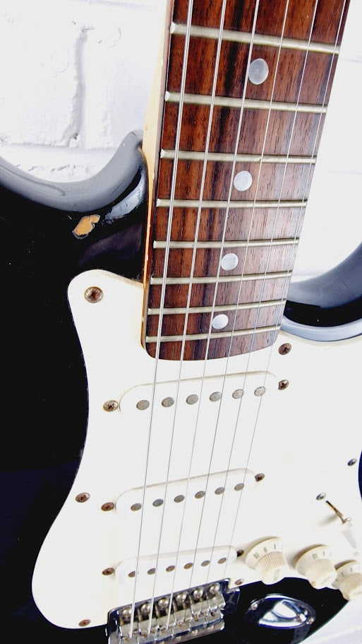 This Fender Squier 1999 Affinity Series Stratocaster in black is a fantastic instrument for those seeking the classic Stratocaster experience. With its comfortable playability and versatile sound, it's perfect for a wide range of musical styles. Despite some cosmetic imperfections, it plays beautifully and delivers the iconic Strat tone that Fender is known for. Whether you're just starting out or adding to your collection, this guitar is a great choice.