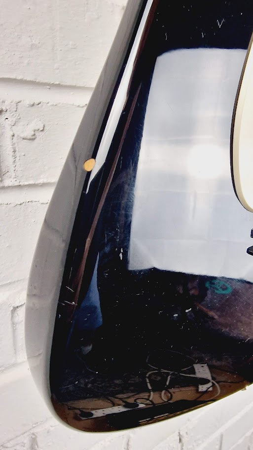 - Body: Solid body with a sleek black finish.