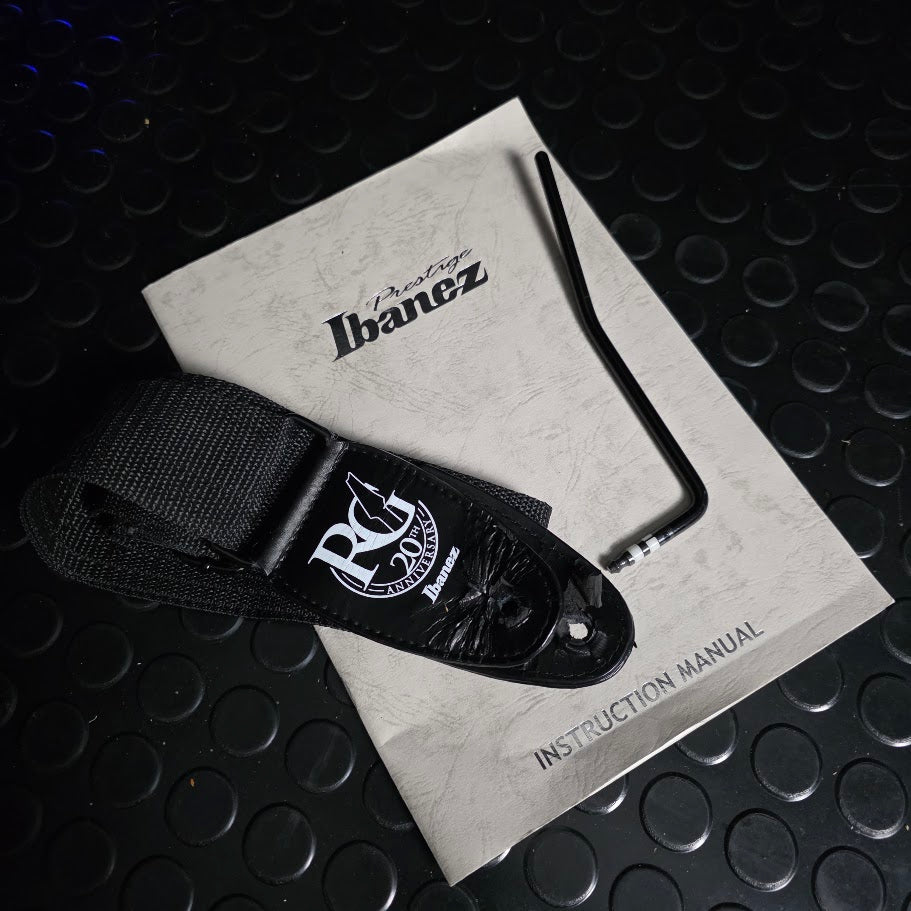 Extras: Original inspection card, tremolo arm, RG anniversary strap, and manual