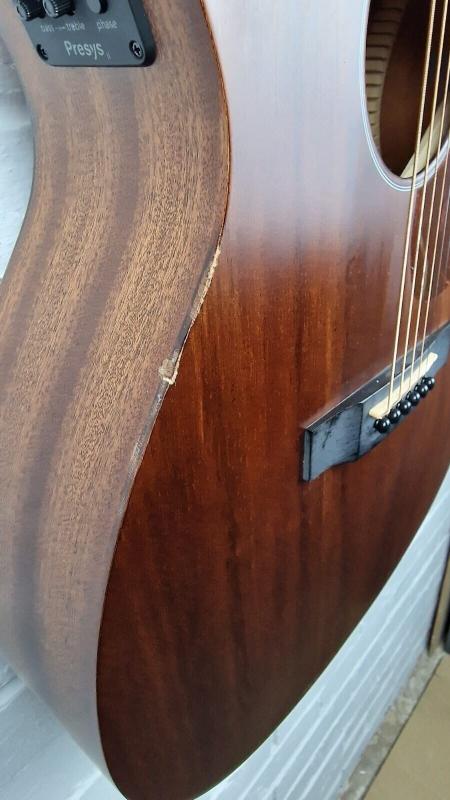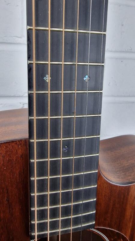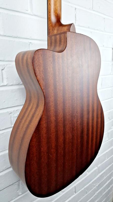 Body Size 000-14 Fret, Cutaway Top Material Solid Mahogany Back & Sides Mahogany Neck Material Mahogany Neck Shape Low Profile Nut Material Bone Fingerboard Micarta Scale Length 25.4" Number of Frets 20 Nut Width 1-11/16” (42,9 mm) Bridge Material Micarta Saddle Bone Electronics Fishman Presys II (with Tuner) Tuners Chrome Grover