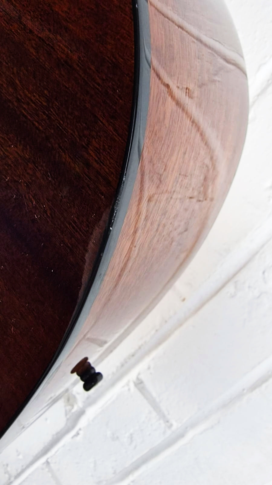 The odd light mark here and there as per a used guitar. Please see pics. Couple of chips to lacquer on bottom edger as pictured.