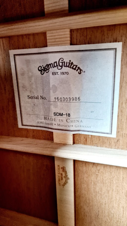SIGMA SDM-18 DREADNOUGHT NATURAL SOLID SPRUCE TOP ACOUSTIC GUITAR