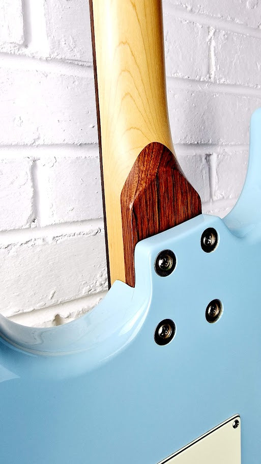 Summary: The Vintage Advance AV6P in Laguna Blue is a versatile and stylish electric guitar that blends classic aesthetics with modern features. Its trio of Wilkinson stacked humbuckers provides a wide tonal palette, while the Wilkinson hardware ensures reliable performance. Whether you're exploring blues, rock, or jazz, this guitar offers the flexibility and playability to meet your needs.
