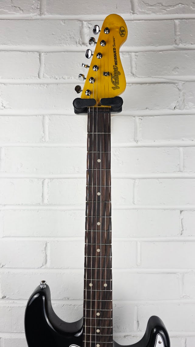 VINTAGE V6 REISSUED BLACK STRATOCASTER ELECTRIC GUITAR