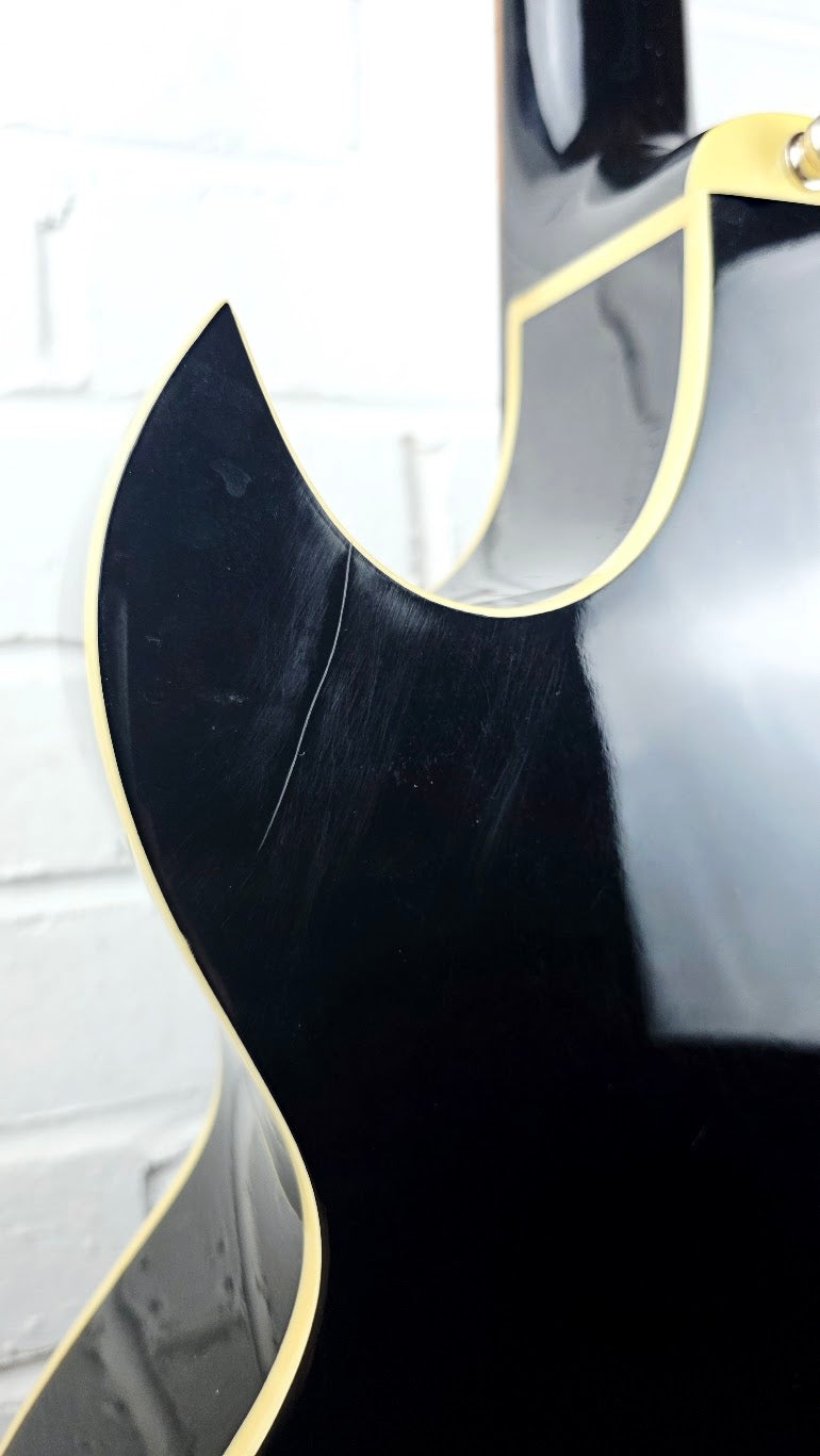 Good condition, plays great. The odd mark here and there as expected for a used instrument. Some noticeable surface scratches and buckle rash on the back, purely cosmetic and nothing that affects playability.