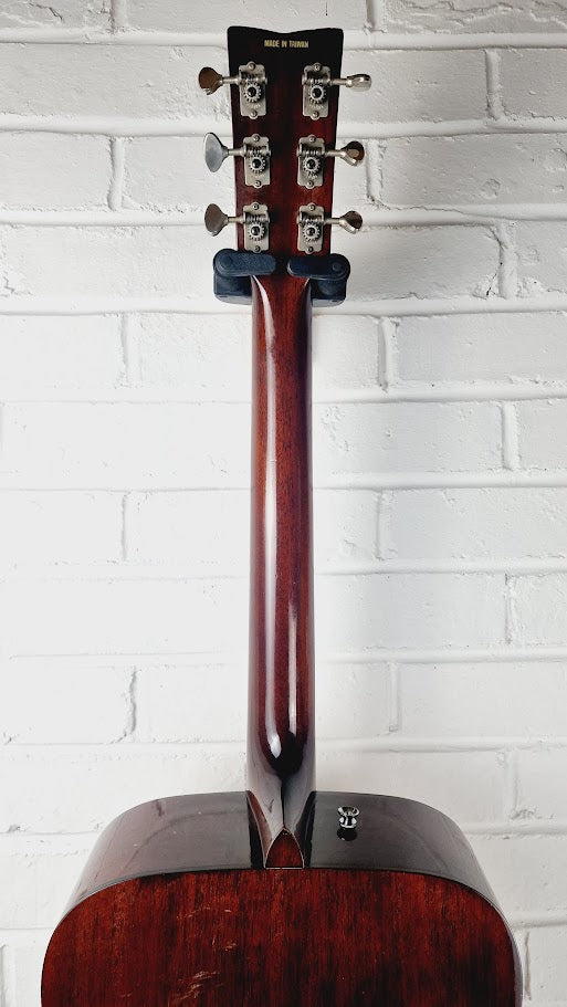 The Yamaha FG-180 from the 1970s is a classic acoustic guitar that has gained a strong reputation for its warm, resonant sound and vintage character. Made in Taiwan, this guitar embodies Yamaha’s renowned craftsmanship and attention to detail, offering a balanced tone that’s both rich and full-bodied. The FG-180 features a dreadnought body that delivers impressive volume and projection, making it perfect for both strumming and fingerpicking styles. With a solid spruce top and reliable construction, this model has a mature sound that has only improved with age, making it a fantastic choice for players seeking a reliable, vintage acoustic.