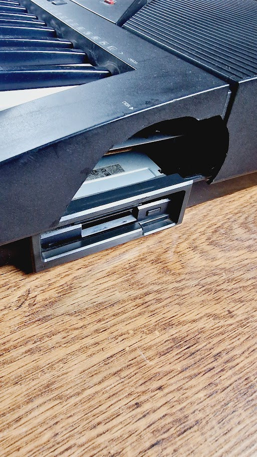 Play great, fully functional. Has various marks to unit as expected for a keyboard from 1991. Has a piece of plastic missing near the floppy disk drive where it must have took a bump on it's side in a previous life. Purely cosmetic and doesn't affect use of instrument. Reflected in price. Does not include sheet music stand.